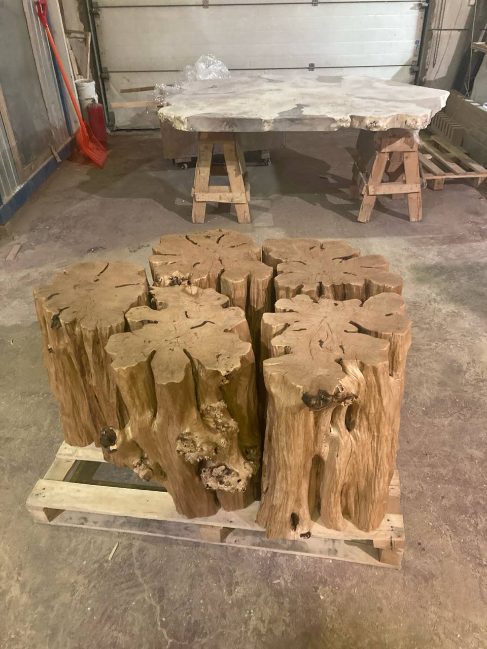 — Подстолье из пней граба б/у 450-600х600мм, покрытие масло, тонировка — 1шт